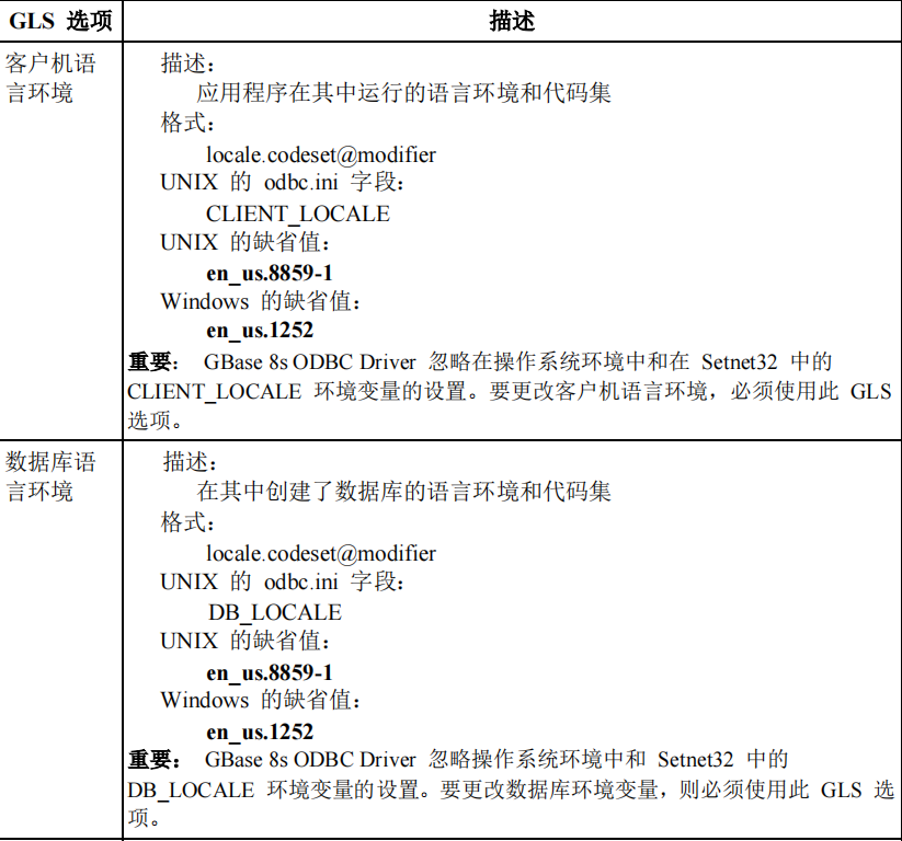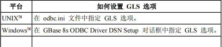 要获取关于 GLS 和语言环境的更多信息,请参阅《GBase 8s GLS 用户指南》。