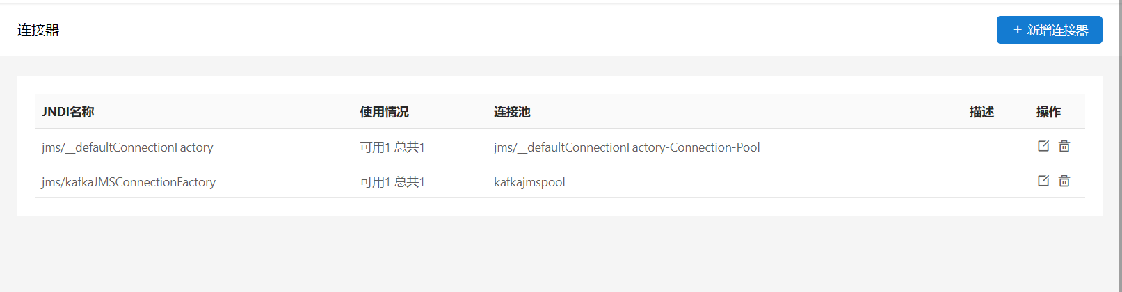 注解使用的前提是中间件服务已经部署并启用了对应的连接器,如下面的flyingserver-jms-kafka-rar-1.0