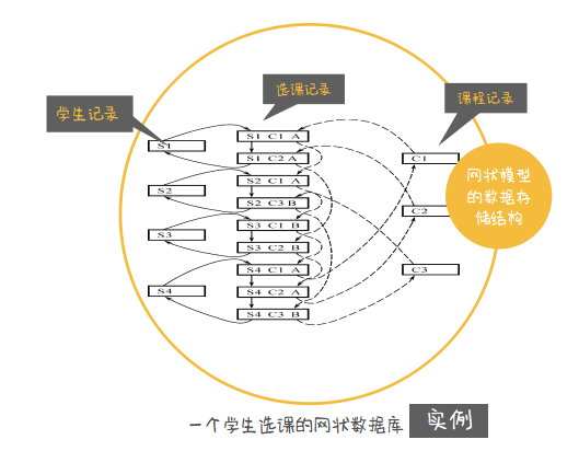 如果用网状模型存储,存储结构是这样的: