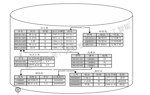 再加入几张表,就构成了一个简单的【教务管理系统数据库】