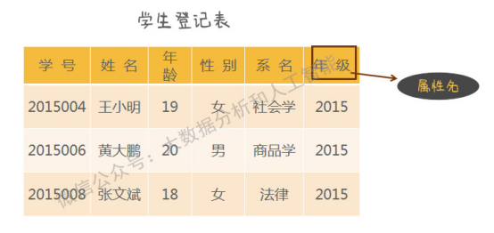 【属性】:在关系模式里,表中一列即为一个属性