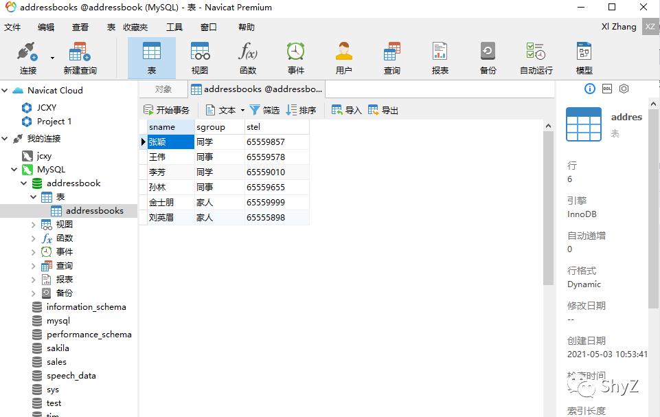首先打开mysql数据库,我用本地已有的一个数据库表来测试: