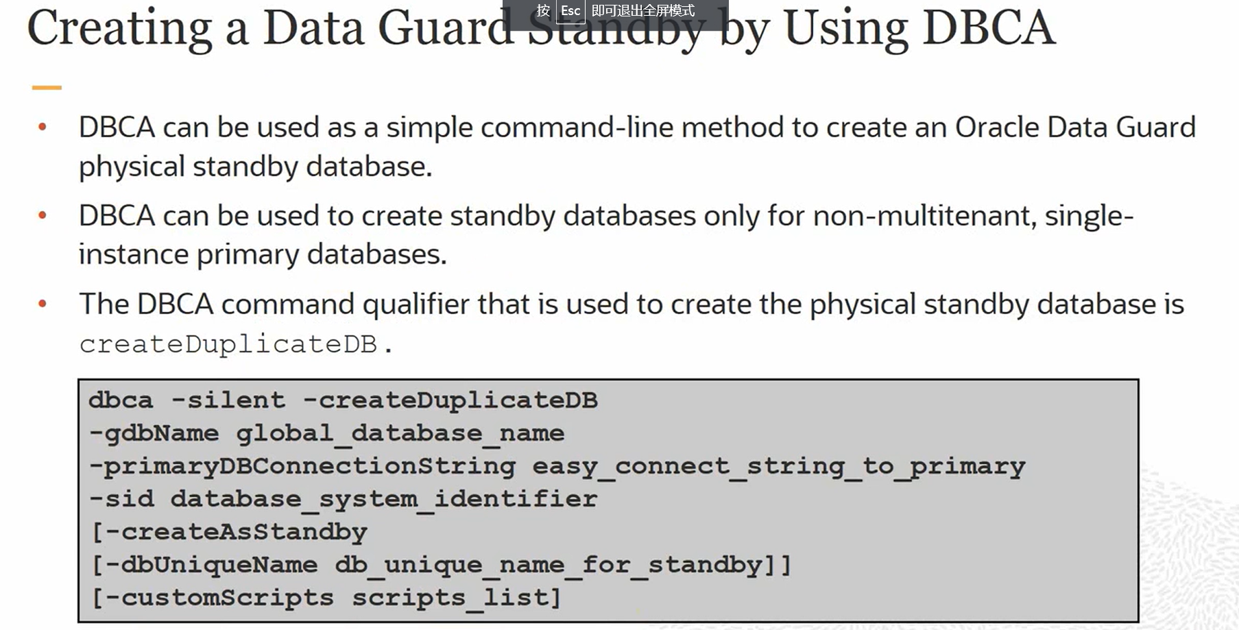 -gdbName chicago.domain -sid boston -initParams instance_name=boston -createAsStandby -customScripts /tmp/test.sqlEnter SYS user password: