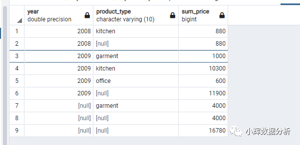 我们可以发现cube的结果相比rollup多了三行: