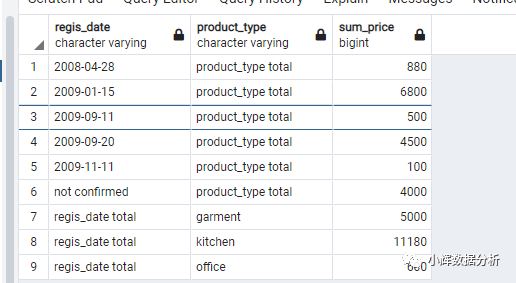 group by grouping sets(regis_date,product_type);