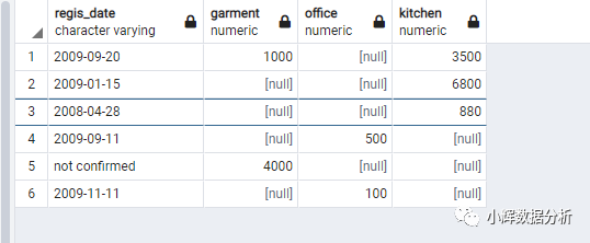 (select coalesce(cast(regis_date as varchar(30)),'not confirmed') as regis_date,