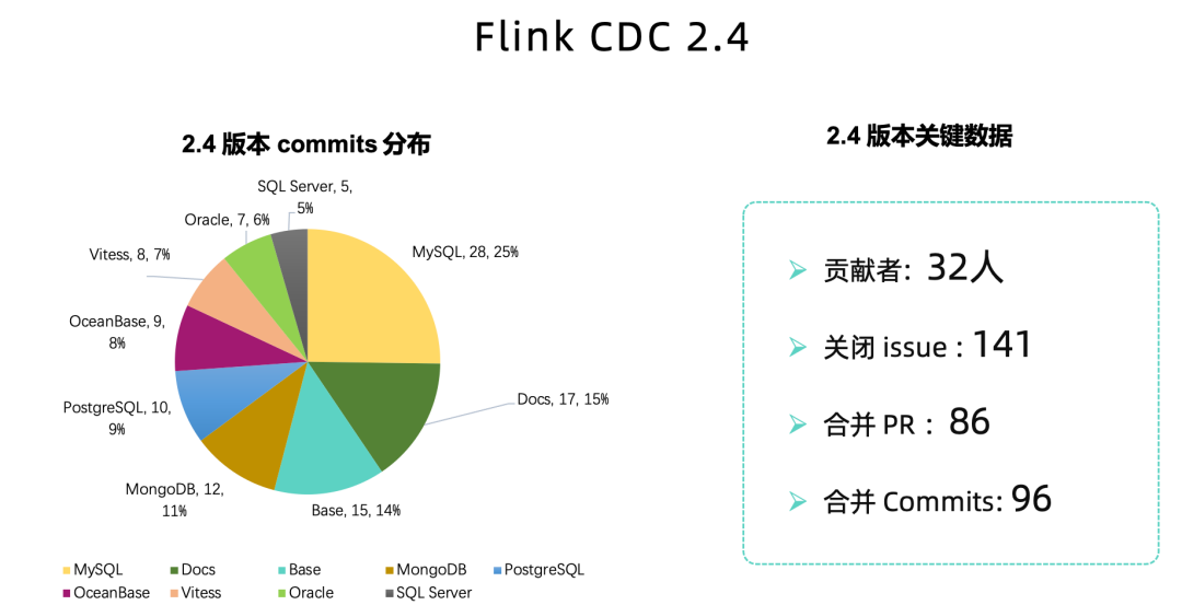 在社区用户和开发者们的共同努力下, Flink CDC 2.4 在端午假期后正式发布了: