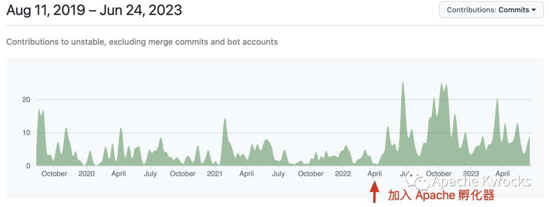 Kvrocks 于 2022 年 4 月底加入了 Apache 孵化器,并在 2023 年 6 月正式成为顶级项目。在加入孵化器的一年左右时间里,社区活跃度有了显著的提升: