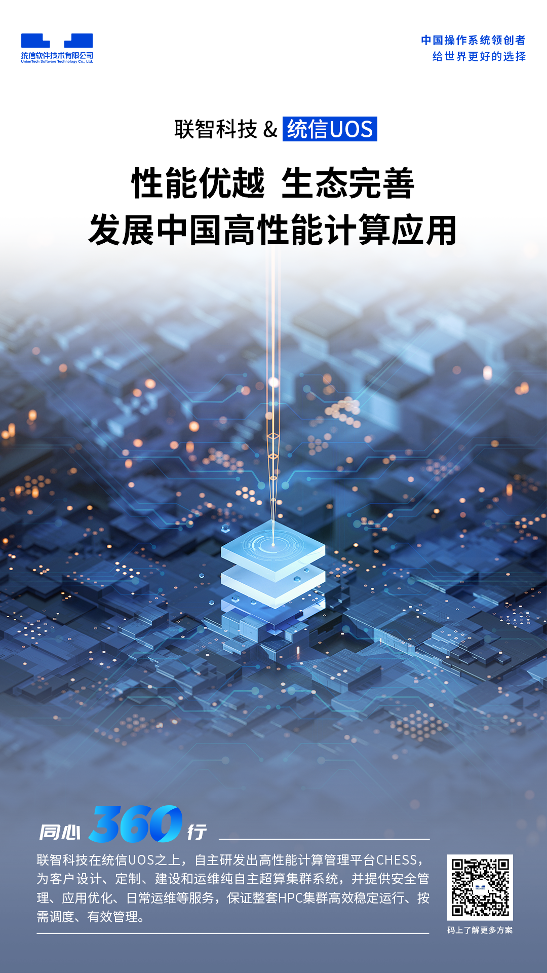 作为国内领先的高性能计算解决方案提供商,联智科技携手中国操作系统领创企业统信软件,联合构建自主可控的自主超算软件系统,该系统从设计之初就将国产处理器自主指令系统特点和安全特性纳入考虑范围。