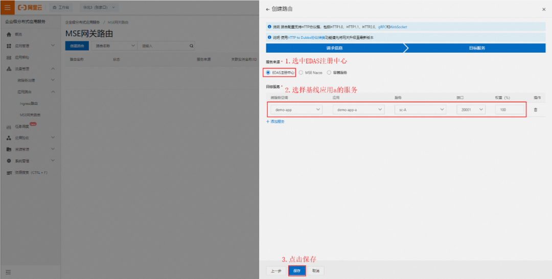 在 EDAS 平台中,用户可以通过 WAR 包、JAR 包或镜像等多种方式快速部署应用到多种底层服务器集群,轻松部署应用的基线版本和灰度版本。同时,EDAS 能够无缝接入 MSE 的服务治理能力,无需额外安装 Agent 即可零代码入侵获得应用无损上下线、金丝雀发布、全链路流量控制等高级特性。