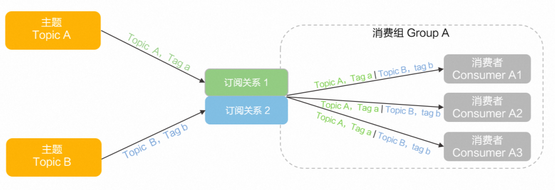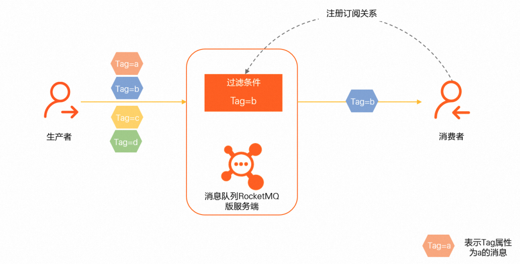 RocketMQ 的订阅关系(Subscription)是系统中消费者获取消息、处理消息的规则和状态配置。订阅关系由消费者分组动态注册到服务端系统,并在后续的消息传输中按照订阅关系定义的过滤规则进行消息匹配和消费进度维护。消息队列 RocketMQ 的订阅关系按照消费者分组和主题粒度设计,因此一个订阅关系指的是某个消费者分组对于某个主题的订阅。1. 不同消费者分组对于同一个主题的订阅相互独立。2. 同一个消费者分组对于不同主题的订阅也相互独立。在消息队列 RocketMQ 的领域模型中,消息由生产者初始化并发送到消息队列 RocketMQ 的服务端,消息按照到达消息队列服务端的顺序存储到对应 Topic 的指定队列中,消费者再按照指定的订阅关系从消息队列 RocketMQ 中获取消息并消费。在实际业务场景中,同一个主题下的消息往往会被多个不同的下游业务方处理,各下游的处理逻辑不同,只关注自身逻辑需要的消息子集。针对这类场景,RocketMQ 的订阅关系支持在消息传输中按照订阅关系定义过滤规则进行消息匹配和消费进行维护。例如控制消费者在消费消息时,选择主题内的哪些消息进行消费,设置消费过滤规则可以高效地过滤消费者需要的消息集合,灵活根据不同业务场景设置不同的消息接受范围。RocketMQ 支持 Tag 标签过滤和 SQL 属性过滤两种场景。由于一条消息只能打一个 string 类型的标签,因此更适合一些简单过滤场景,而后者是通过生产者为消息设置K/V键值对作为属性,并设置 SQL92 语法的过滤表达式过滤多个属性,因此更适合一些复杂过滤场景。此外,Tag本身也是消息的系统属性,因此 SQL 过滤也兼容 Tag 过滤。在 SQL 语法中,Tag 的属性名称为 TAGS。