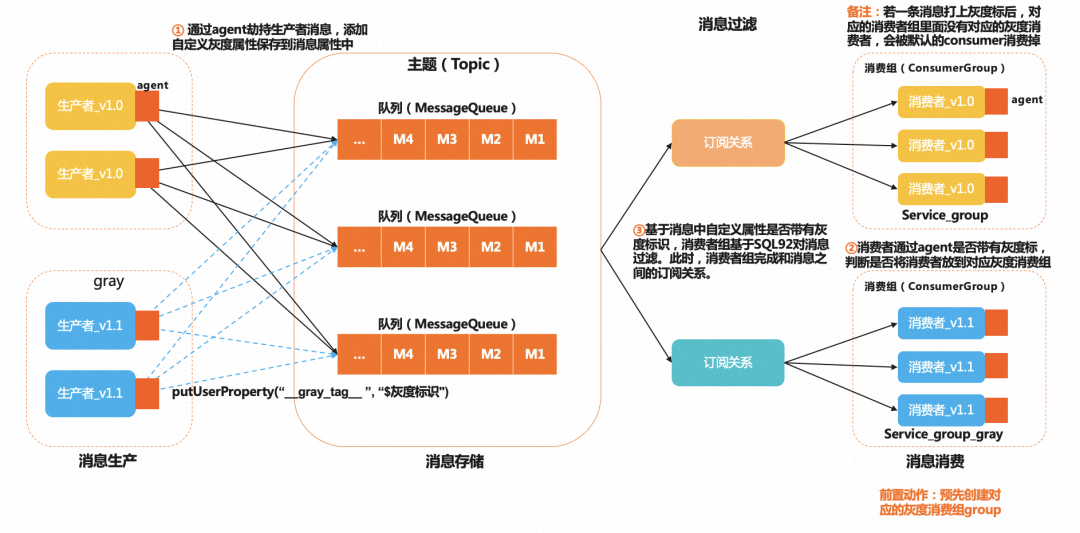 4. 需要对消息队列中的消息做灰度分组,并由对应的 Consumer 将消息消费。