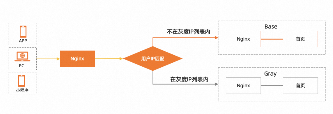 if ($http_x_forwarded_for ~ "(xxx.xxx.xxx.01|xxx.xxx.xxx.02|xxx.xxx.xxx.03") { # 判断来源IP,设置灰度条件的初始值
