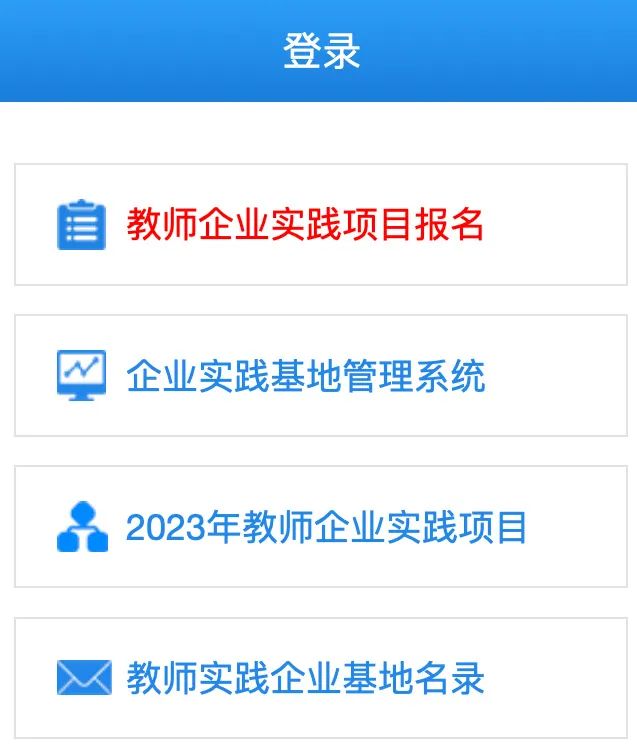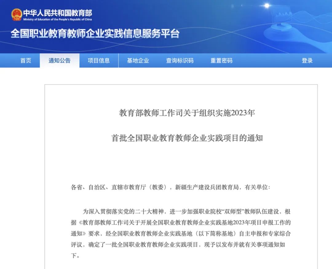 请各位学校老师登录企业实践基地管理系统(登录用户名为学校代码,初始密码为123456,网址:http://sjjd.tvet.net.cn,点击红色文字即可进入登录页面),系统为校内教师分配系统登录账号(账号格式建议为“学校代码+教师工号”,初始密码为123456),教师可登录管理系统自主选报项目。