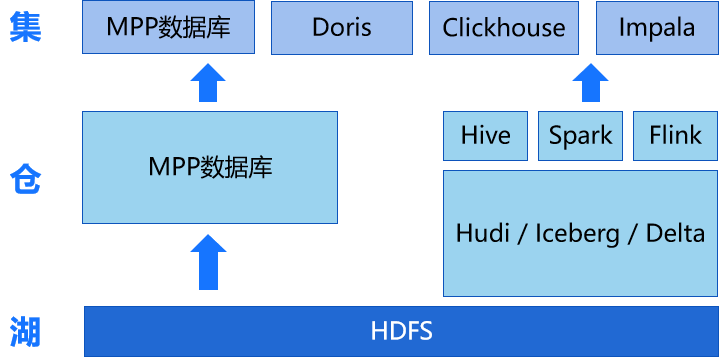 传统湖仓集混合架构,需要部署多个平台进⾏数据存储,造成数据冗余和存储资源浪费。其次,数据需要跨平台ETL流转,流转开销高,时效性较差。数据跨平台流转中还容易导致不⼀致,影响业务正确性。此外,多平台的开发标准不一致,存在一定的技术门槛,权限管理复杂。当需要跨层数据时,严重依赖其他部门的数据⼯程师、数据科学家来加⼯数据,对数据分析师来说,数据分析探索的效率大大降低。