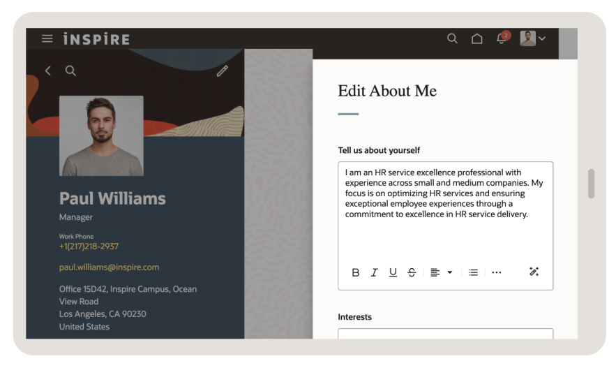 Oracle 宣布在 Oracle Fusion Cloud Human Capital Management (HCM) 中新增基于生成式 AI 的功能。在 Oracle 云基础设施远程软件服务 (Oracle Cloud Infrastructure, OCI) 生成式 AI 服务的支持下,新功能内嵌于现有人力资源(HR)流程中,可加速业务价值变现、提高生产力、改善候选人和员工体验并简化 HR 流程。