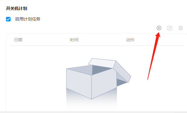 3、我们也可以启用【开关机计划】,定时开关机的时候和日期。点击右上角的创建。
