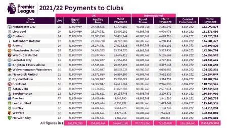 这三部分中,下赛季涨幅最大的毫无疑问是转播收入。以上赛季为例,2021/22赛季排名最末的英超球队诺维奇,获得了1.006亿英镑的转播收入。然而,这已经是上一个转播周期的数字了:从2022/23赛季开始,英超进入了一个新的转播周期,最显著的改变在于海外转播合同的价格历史首次超越了英国本土转播合同。原本25亿的总收入分配额,将会至少增长10%-20%,升至28-30亿英镑。