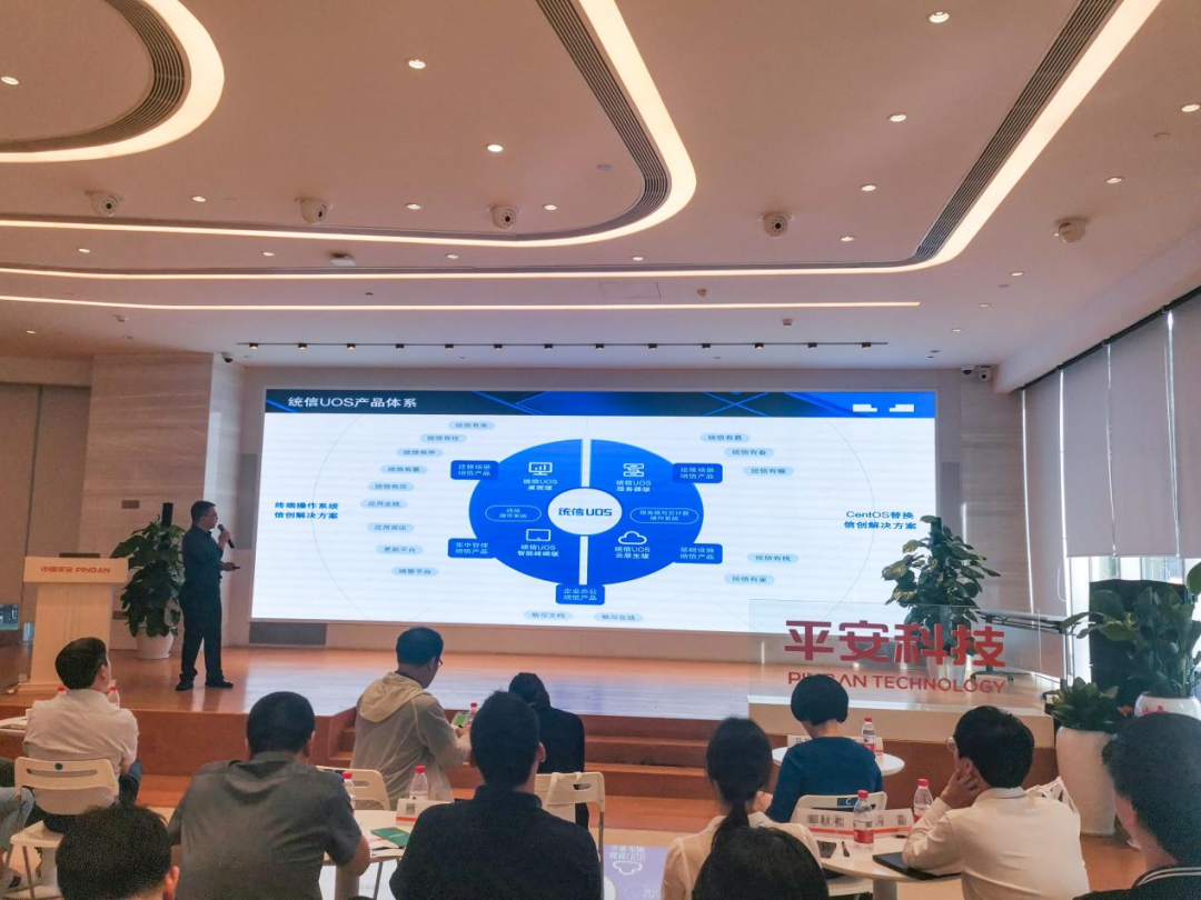 基于金融行业软件国产化的深度理解和丰富经验,近日,统信软件走进平安科技,联合主办了金融行业信息技术应用创新高质量发展主题沙龙,旨在交流金融行业国产化进程中自研软件开发与管理,分享基础软件国产化迁移实践。华南区域银行、证券、基金、期货、保险等金融行业及相关国有企业IT负责人出席此次活动。