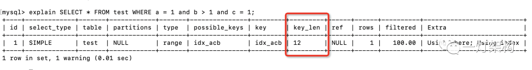 SELECT * FROM test WHERE a = 1 and b > 1 and c = 1;