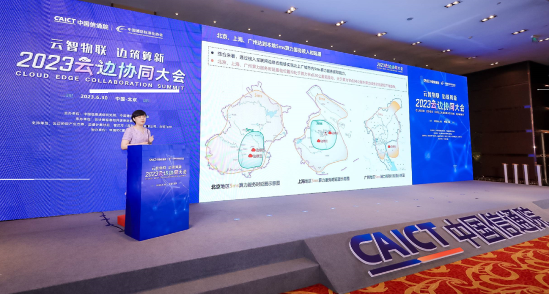 2023年6月30日,由中国信息通信研究院(以下简称“中国信通院”)、中国通信标准化协会主办,云计算标准和开源推进委员会承办的“2023云边协同大会”在北京歌华开元酒店召开。大会以“云智物联,边筑算新”为主题,公布了分布式云、边缘计算、AIoT平台的最新评估结果,发布云边端一体化技术创新与最佳实践先锋案例,并与合作伙伴共同发布《银行业大规模异构边缘节点管理实践指南》《分布式云行业实践指南》等成果,解读并发布算力服务时延圈标准体系,启动算力服务时延圈领航计划,并公布算力服务时延圈首批评估结果。