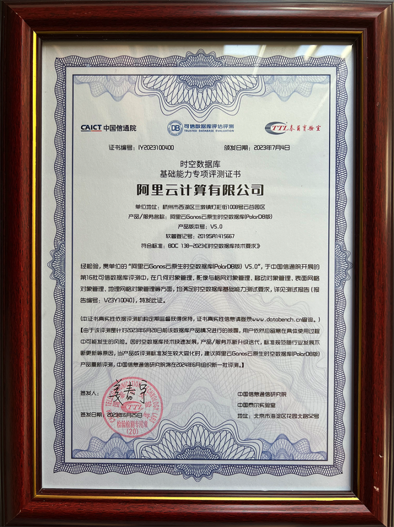 Ganos联合PolarDB通过信通院时空数据库产品评测