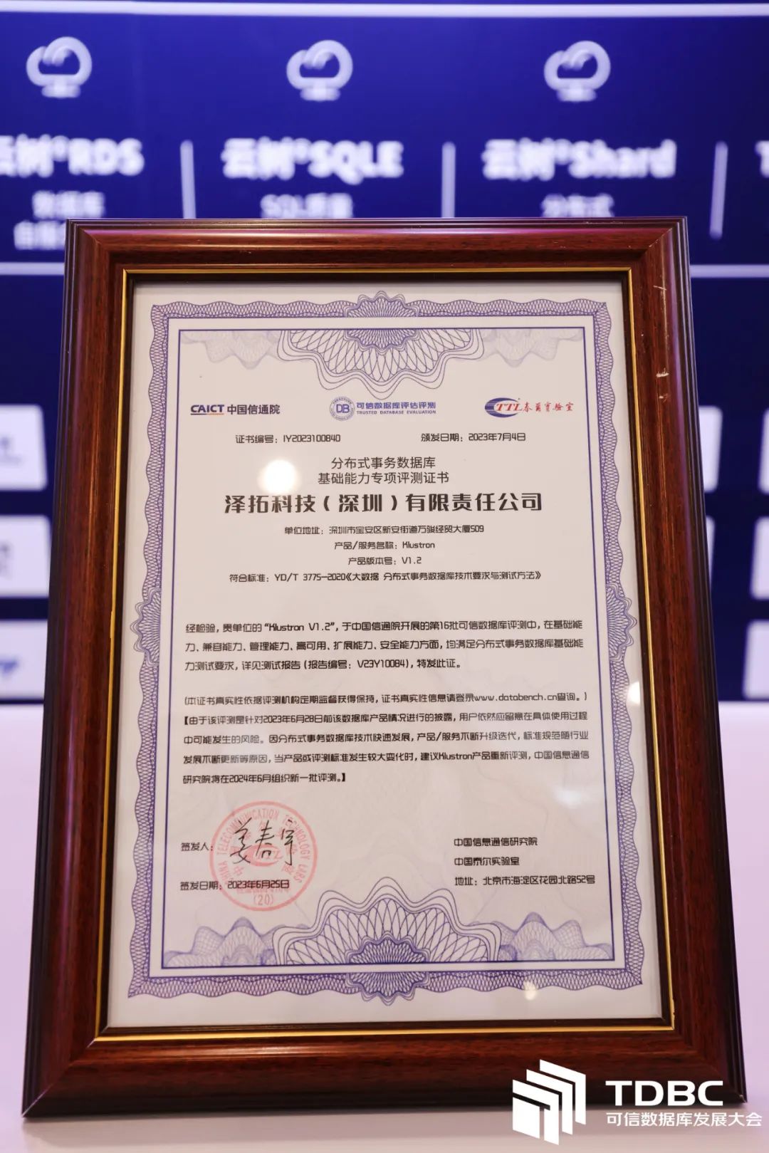 会上,中国信通院公布了通过第十六批可信数据库评测的企业和产品。在经过严苛测试、专家评审等流程后,泽拓科技数据库产品Klustron v1.2在基本功能、兼容能力、高可用、云服务等46个实测项中,均达到合格标准,成功通过中国信通院“可信数据库”评测。同时,泽拓科技Klustron作为成员之一参与《数据库发展研究报告(2023年)》编制工作并正式入选《中国数据库产业图谱(2023年)》,为展示中国数据库产业全貌贡献一份力量。Klustron是一款国产的分布式HTAP关系型数据库,可以管理PB级别海量数据,支持自动不停服的水平弹性伸缩。同时,Klustron具备金融级高可靠性,高性能,高可扩展性,和完备的故障恢复和容灾能力。Klustron具备完整的OLAP功能,扩展了传统数据分析领域,适合分析最新的和不断更新的业务数据,并且支持大数据分析。适合金融、电信、能源、互联网等各领域的数据管理、事务处理和数据分析场景。