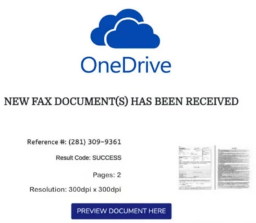 这封钓鱼邮件的主题是一个七位数字的代码,而这个代码对于每个目标组织来说都是独一无二的,这应该是攻击者的一个跟踪机制。在这个钓鱼邮件的正文中包含一个查看或下载传真文件的链接,而这个链接指向一个托管在 canva[.]com 的恶意 URL。