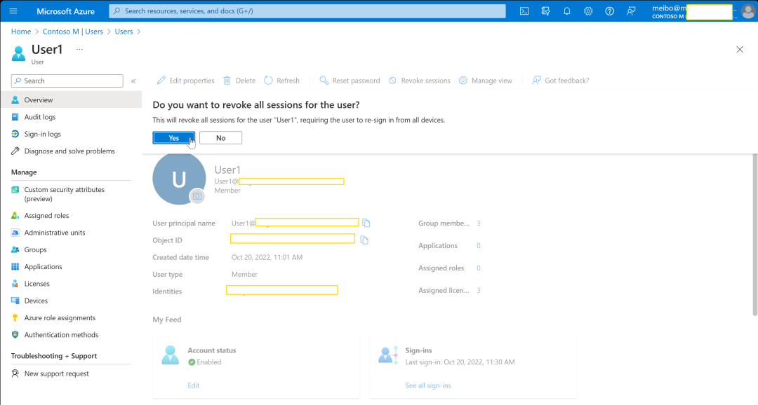 这次安全事件中除了凸显出基于中间人攻击技术(AiTM)的网络钓鱼和商业邮件欺诈(BEC)的复杂性之外,与之相对应的安全防御和响应措施也极为复杂。例如需要重置相关用户的密码、检查相关 MFA 身份验证配置、撤销用户所有会话 Cookie(如下图所示)、配置 Azure AD 身份保护策略、配置 Azure AD 基于条件的访问控制策略(CA)等等。