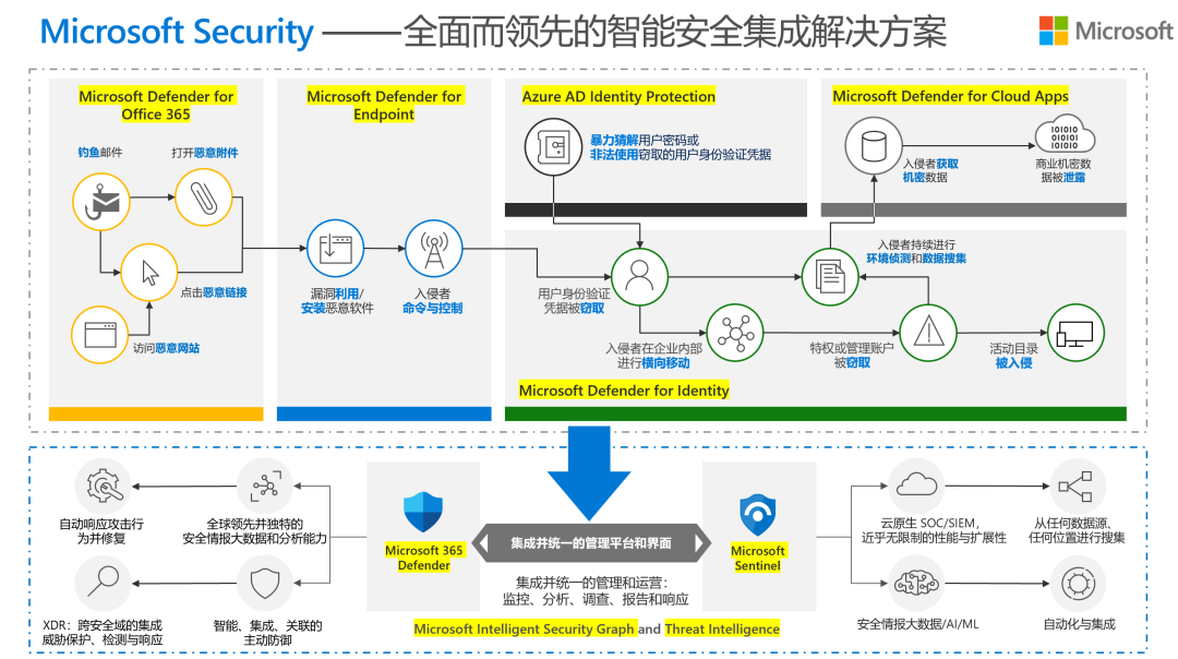 无论是安全、身份、端点、数据、SOC 还是隐私合规,所有微软安全产品系列作为一个跨云和跨平台的智能集成综合安全解决方案协同工作,帮助客户实现统一集成的、自动化的安全防护和管理,利用全球领先地安全产品和技术,在避免冗余和重叠的同时,最大限度地发挥其现有产品的价值,同时简化包含部署成本、管理成本在内的总体拥有成本,并降低整体复杂性。