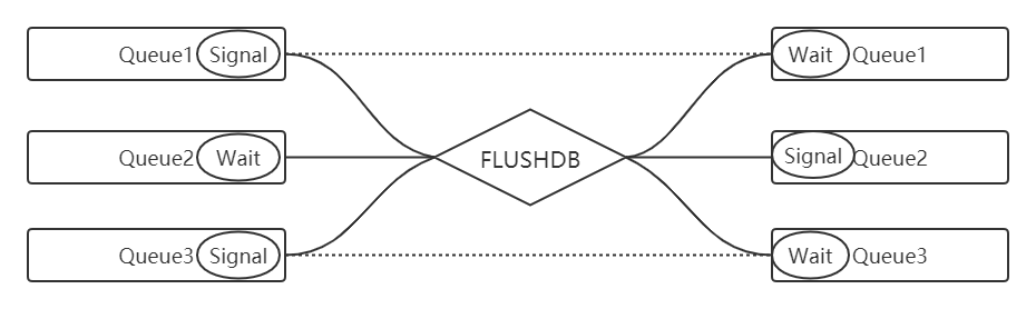 (上述case, 假定由Queue2进行FlushDB的分发)