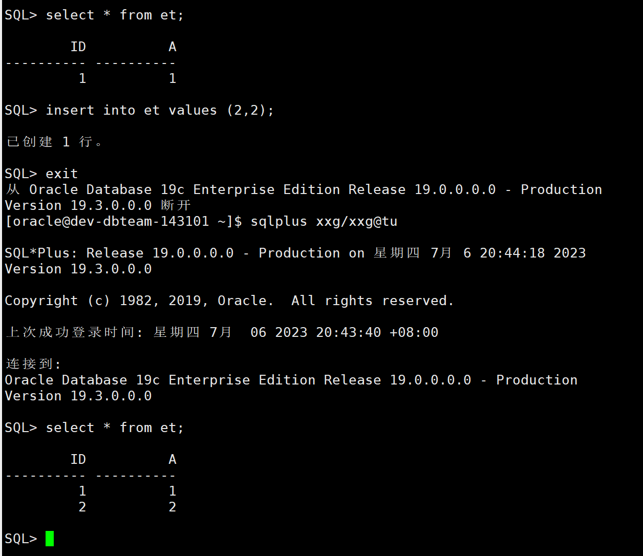 然而下面一个场景,可能就和大家预期有点不一样。因为在insert之后没有提交,而是执行了退出。可能按照常理来说,属于rollback。但是结果和预期不一样。退出会话(或者说事务)的时候,看样子是执行了隐式提交。