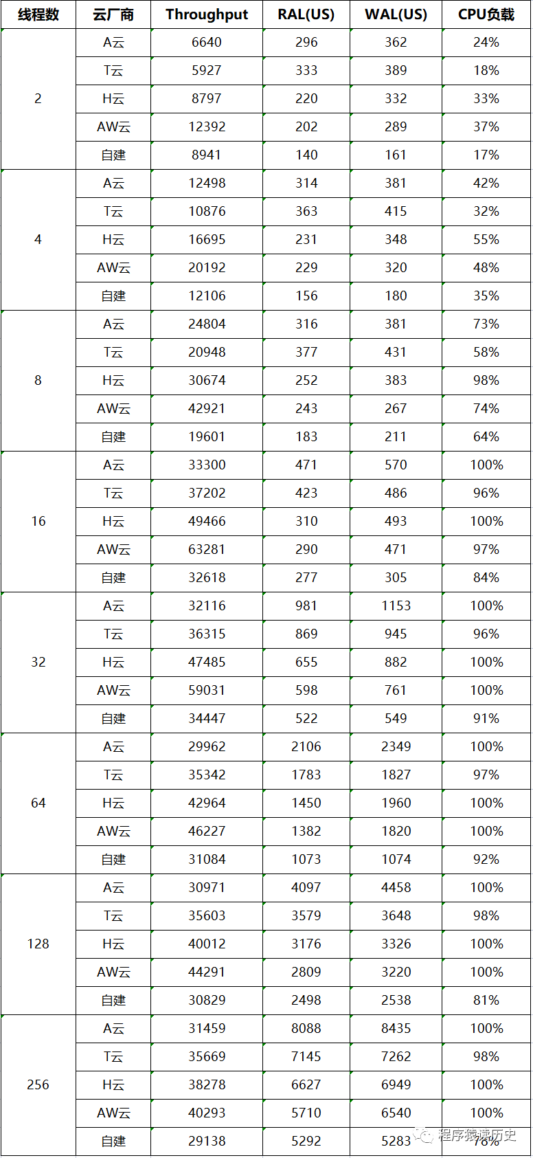 由于工作关系,笔者曾对国内外四家云厂商巨头的 MongoDB 产品做了性能测试,测试对象是托管的 MongoDB V4.0 三节点副本集架构。由于不同云厂商的产品规格并不统一,比如 MongoDB V4.0 副本集架构国内的A云、T云有4C8G的规格,国内的H云和国外A云(以下采用AW云)并没有该规格。因此,H云选择4C16G规格替代,AW云选择4C32G规格替代。另外,这次测试是2022年Q2做的,不代表云厂商产品的当前状态。综上情况,此次云厂商MongoDB性能测试结果,不具有生产实际参考,仅供参考。