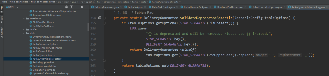 sink.semantic为弃用参数,新的参数为sink.delivery-guarantee,另外可能还需要结合sink.transactional-id-prefix一起使用,下面是相关源码: