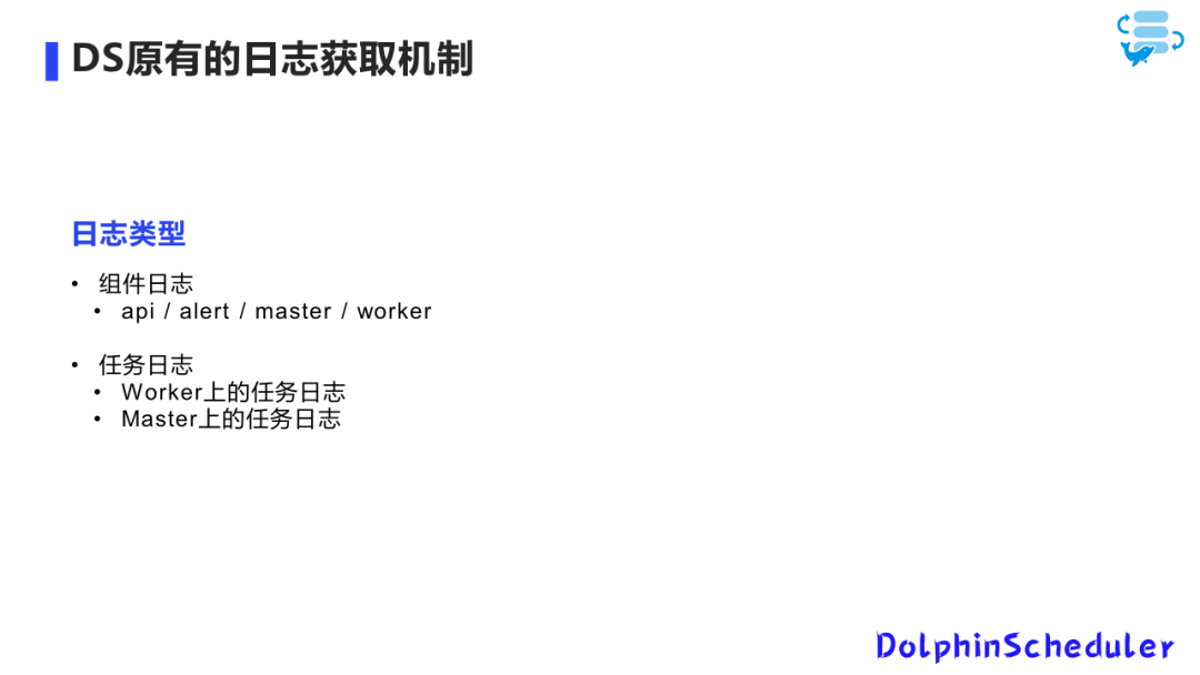首先是轻量级,因为Apache DolphinScheduler的日志模块在设计之初就考虑到了轻量级。我们知道,日志获取并不是大数据调度的核心模块或功能,所以我们不希望引入复杂的功能,增加Apache DolphinScheduler的复杂性。