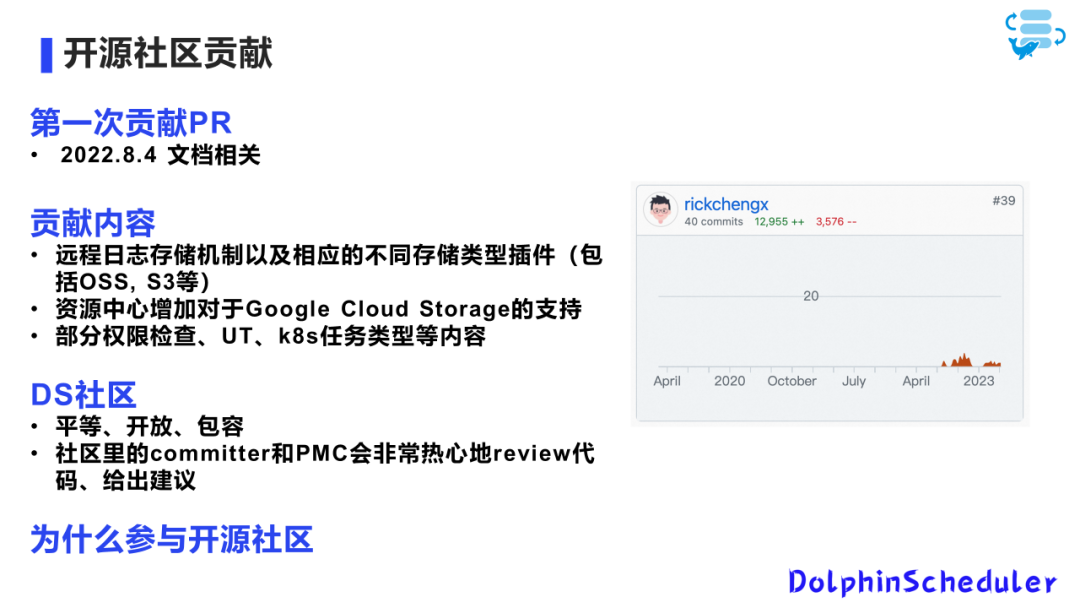 接下来,我会分享我在参与Apache DolphinScheduler开源社区的一些贡献经