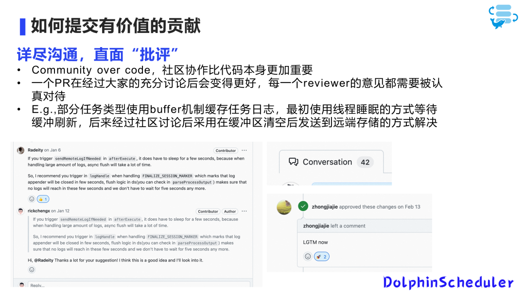 另外,我认为在提交PR的过程中,详尽的沟通和能够直面批评是非常重要的。我们经常说,Apache社区讲的是"community over code",即社区的协作比代码本身更加重要。每一个reviewer的意见都需要被认真对待。