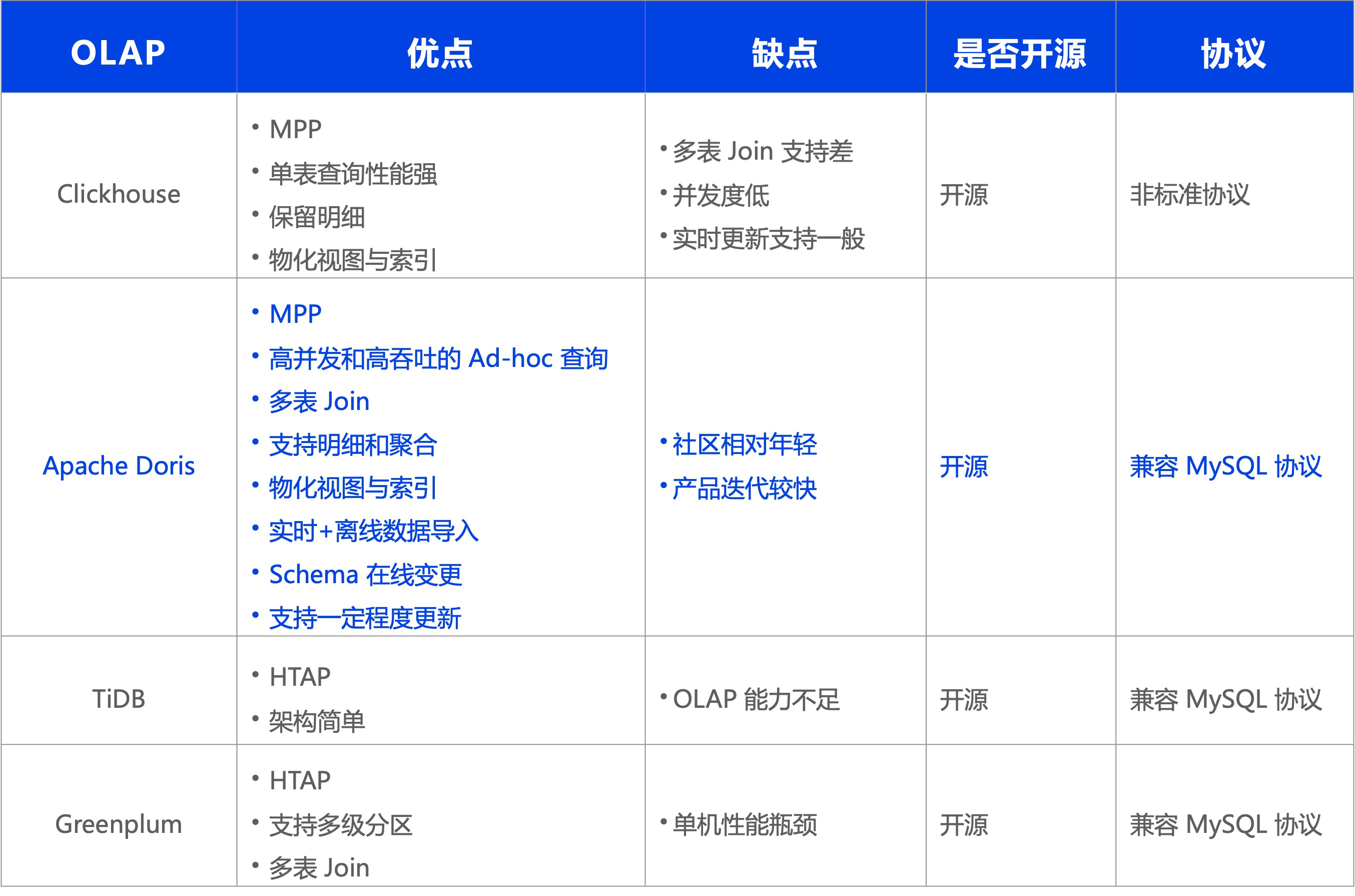 最终,在集团内部其他子公司的使用反馈与推荐下,我们发现 Apache Doris 非常符合我们的诉求,并坚定不移地选择 Apache Doris 进行架构升级,主要原因如下: