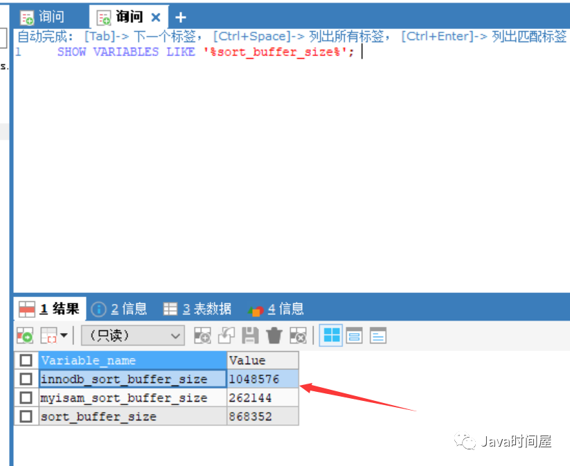 sort_buffer_size是一个connection级参数,在每个connection第一次需要使用这个buffer的时候,一次性分配设置的内存。并不是越大越好,由于是connection级的参数,过大的设置+高并发可能会耗尽系统内存资源。官方文档推荐范围为256KB~2MB,一般设置为2M。查询命令: