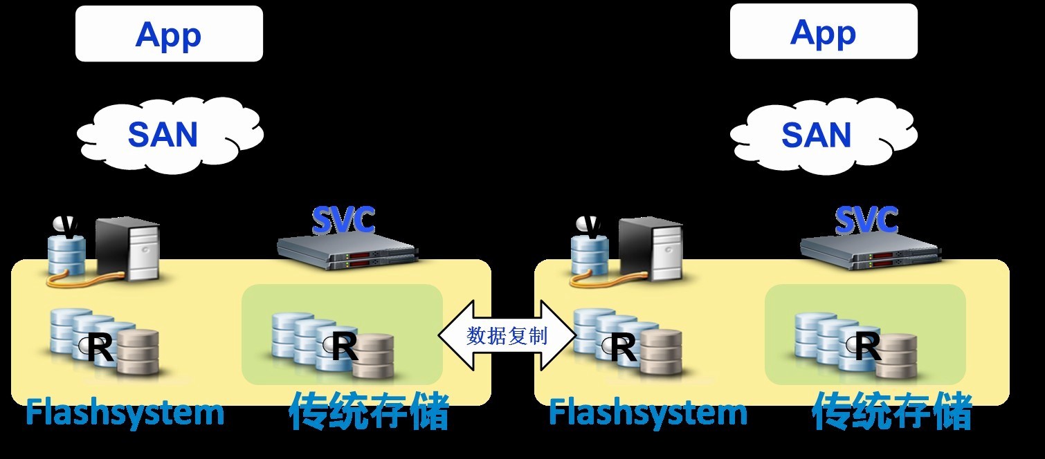 如上图所示,传统阵列存在性能瓶颈,IOPS达到瓶颈,FlashSystemV9000包含一个SVC可以帮助解决Oracle数据库用户面临的性能挑战,通过将读数据存放在低延迟的全闪存阵列上,读操作会被更快的处理,从而带来性能的极具提升。利用SVC的VDM功能,实现关键数据的优先读,确保性能加速;同时镜像双份保存到两台物理存储,保证任一存储设备出现突发状况,始终有一台存储可以保持正常读写;日常维护中,可以保证在微码升级的场景下,有冗余的可用在线数据;存储池技术和在线迁移技术配合,可以实现新旧设备的便捷更替,对服务器透明,对OS透明,对业务透明。