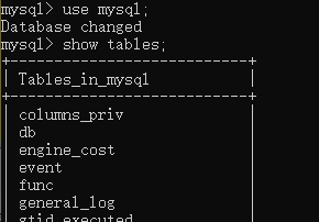 use mysql;show tables;