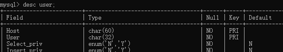 desc user;