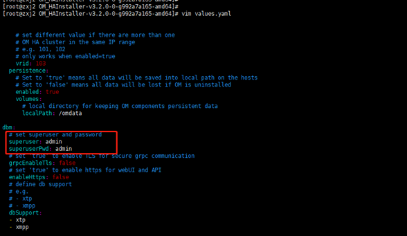 如需改动,在DBManager安装时通过配置values.yaml进行修改,如下图所示: