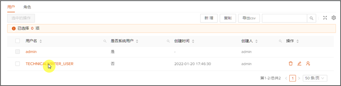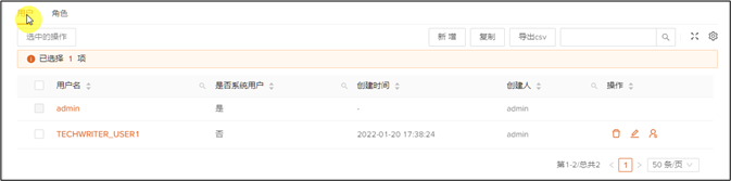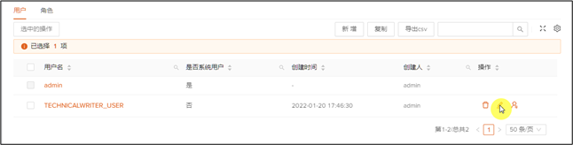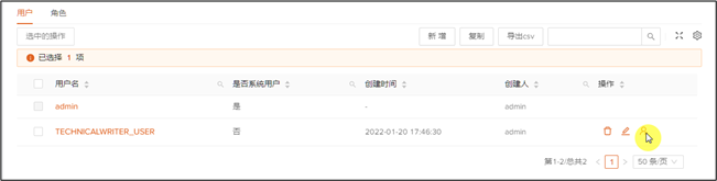 1、 点击用户TECHNICALWRITER_USER最后操作列中的分配角色图标。
