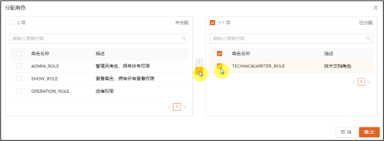 点击右上角的分配角色,可以给该用户分配其他角色,详见分配角色。