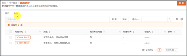 系统默认创建两个角色,不允许用户对其进行任何改动操作。