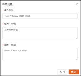 本示例为新建角色TECHNICALWRITER_ROLE。