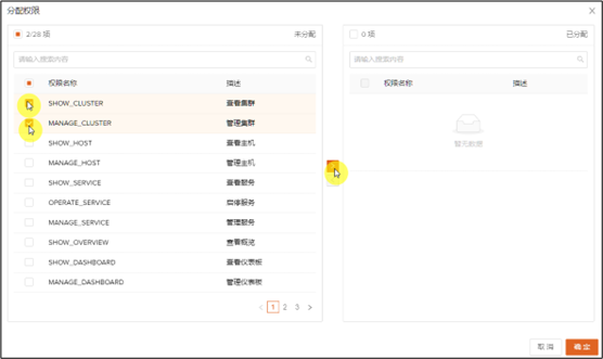 集群权限管理通过用户管理-管理器用户分配集群权限