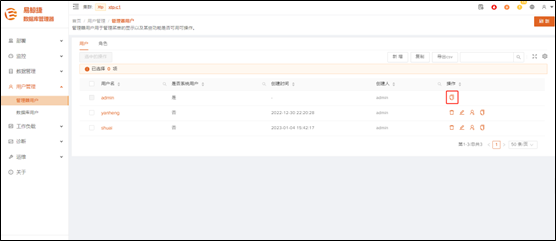 系统默认创建一个管理员用户admin,不允许用户对其进行任何改动操作。