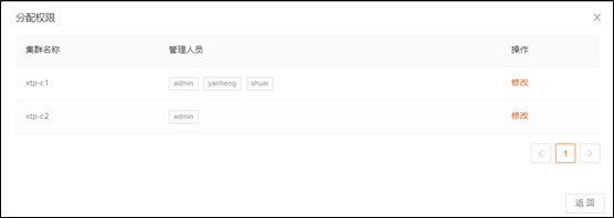 点击“修改”可以对集群现有的管理用户进行分配,修改完成后点击“保存”即可